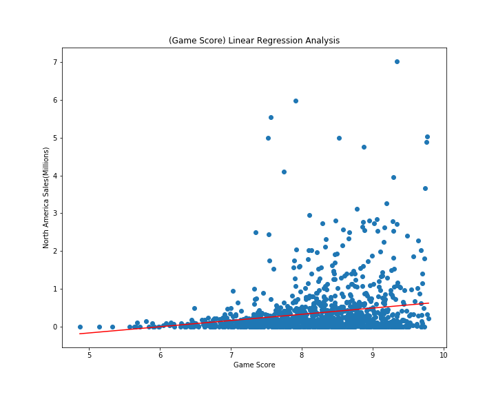 increase in Game Score seems to have a positive effect on sales of about 250k when starting from a