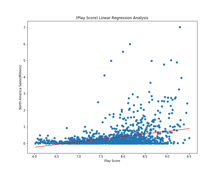 There is a positive corelation between the Video Game Sales and Play Score. An 8-point increase